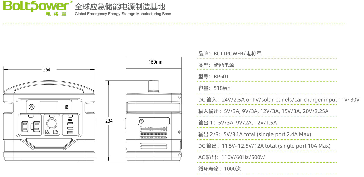 電將軍(BOLTPOWER.)BP501 便攜式戶外移動電源 戶外移動充電寶