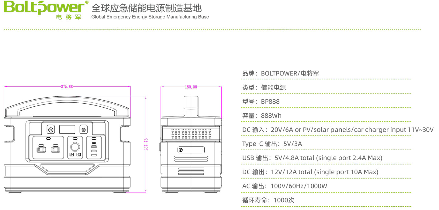 Boltpower電將軍BP888便攜式戶外移動電源